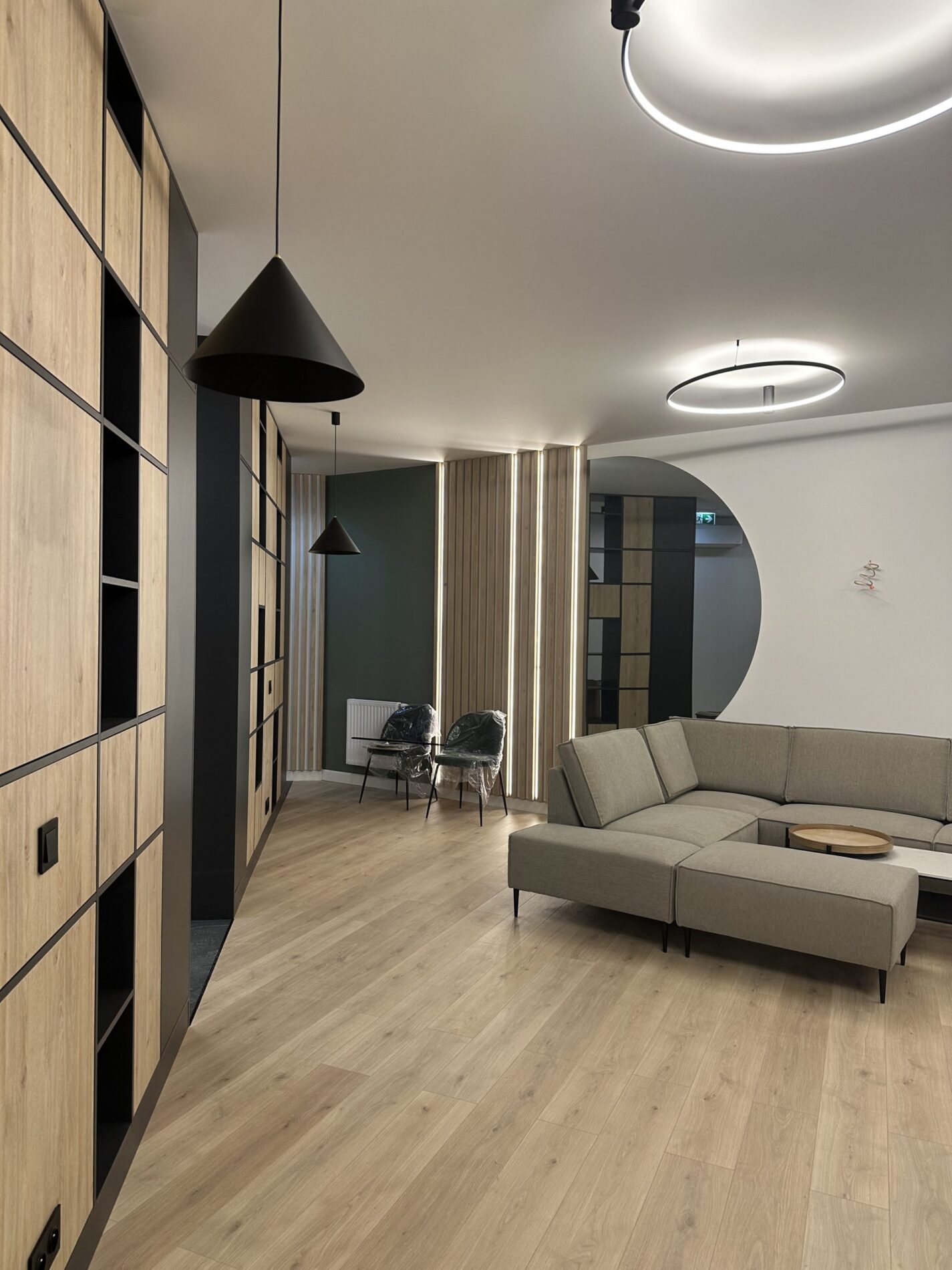 Wyburzenie ścian, postawienie nowych ścian, instalacja elektryczna, instalacja wodno-kanalizacyjna sufity podwieszane, układanie wielkoformatowych płytek 280×120 oraz mozaiki, kompleksowe wykończenie łazienki, montaż drzwi wewnętrznych ukrytych, montaż oświetlenia, układanie parkietu, układanie wykładziny, cekolowanie i malowanie ścian i sufitów, tapetowanie.