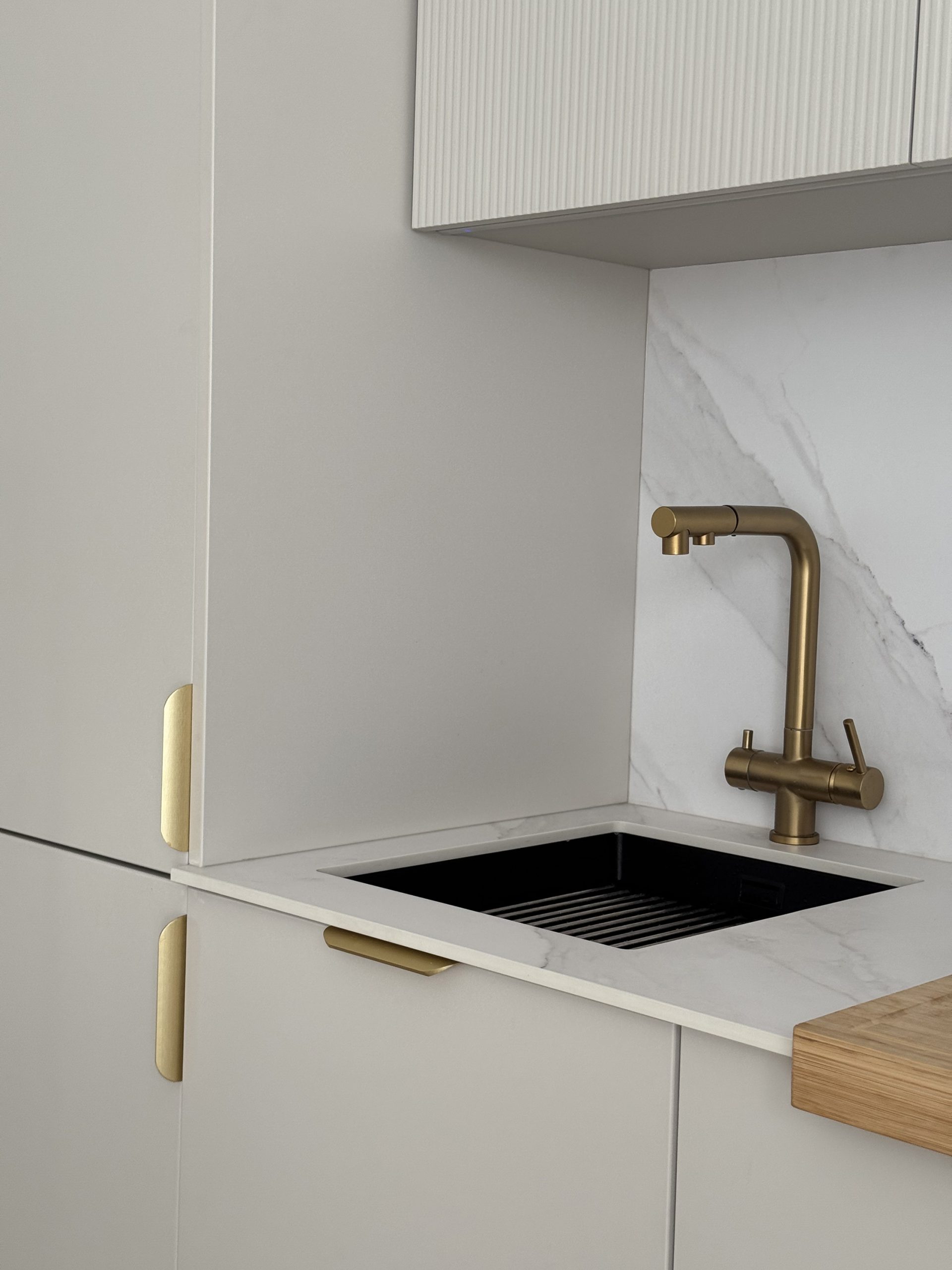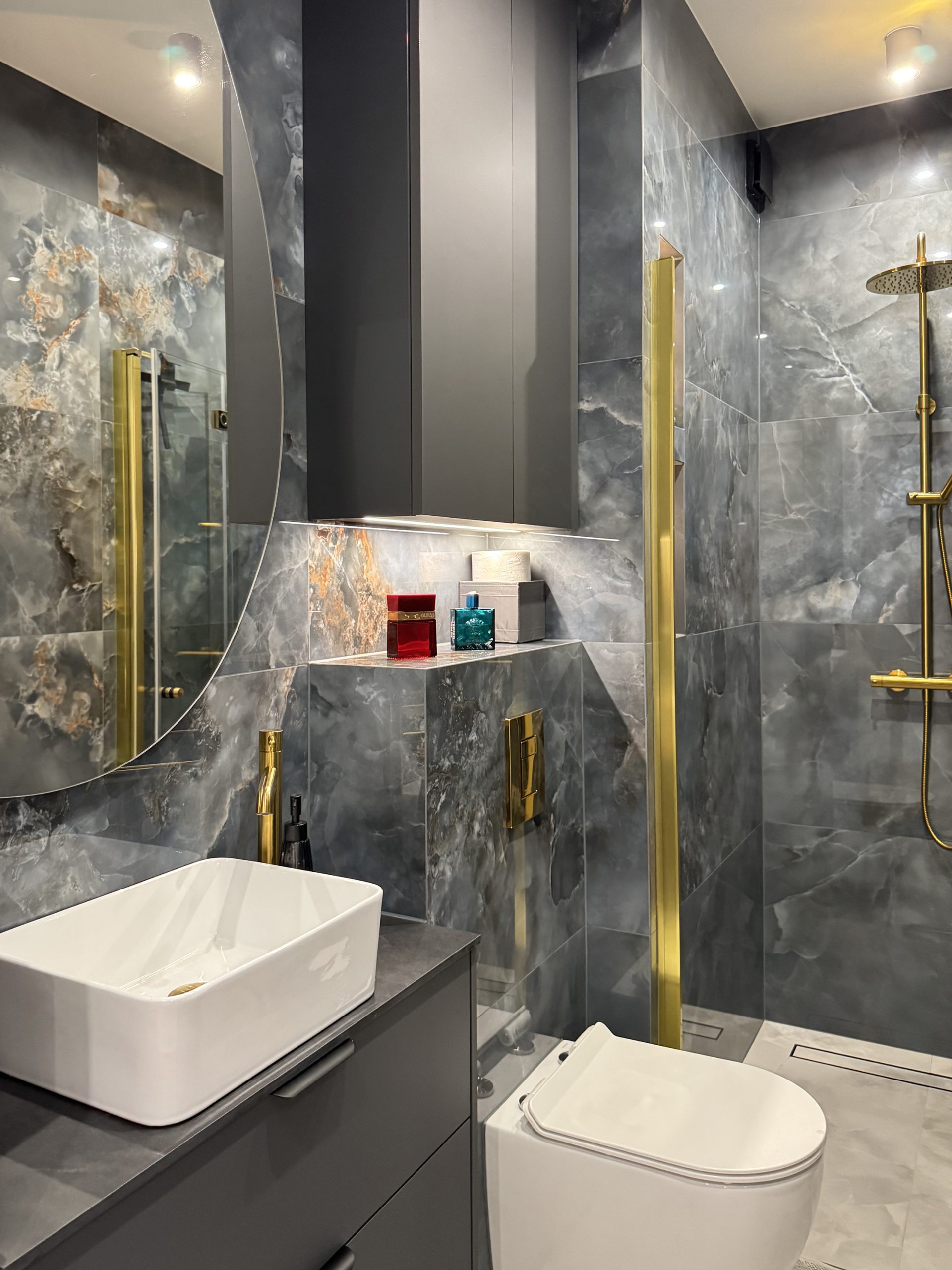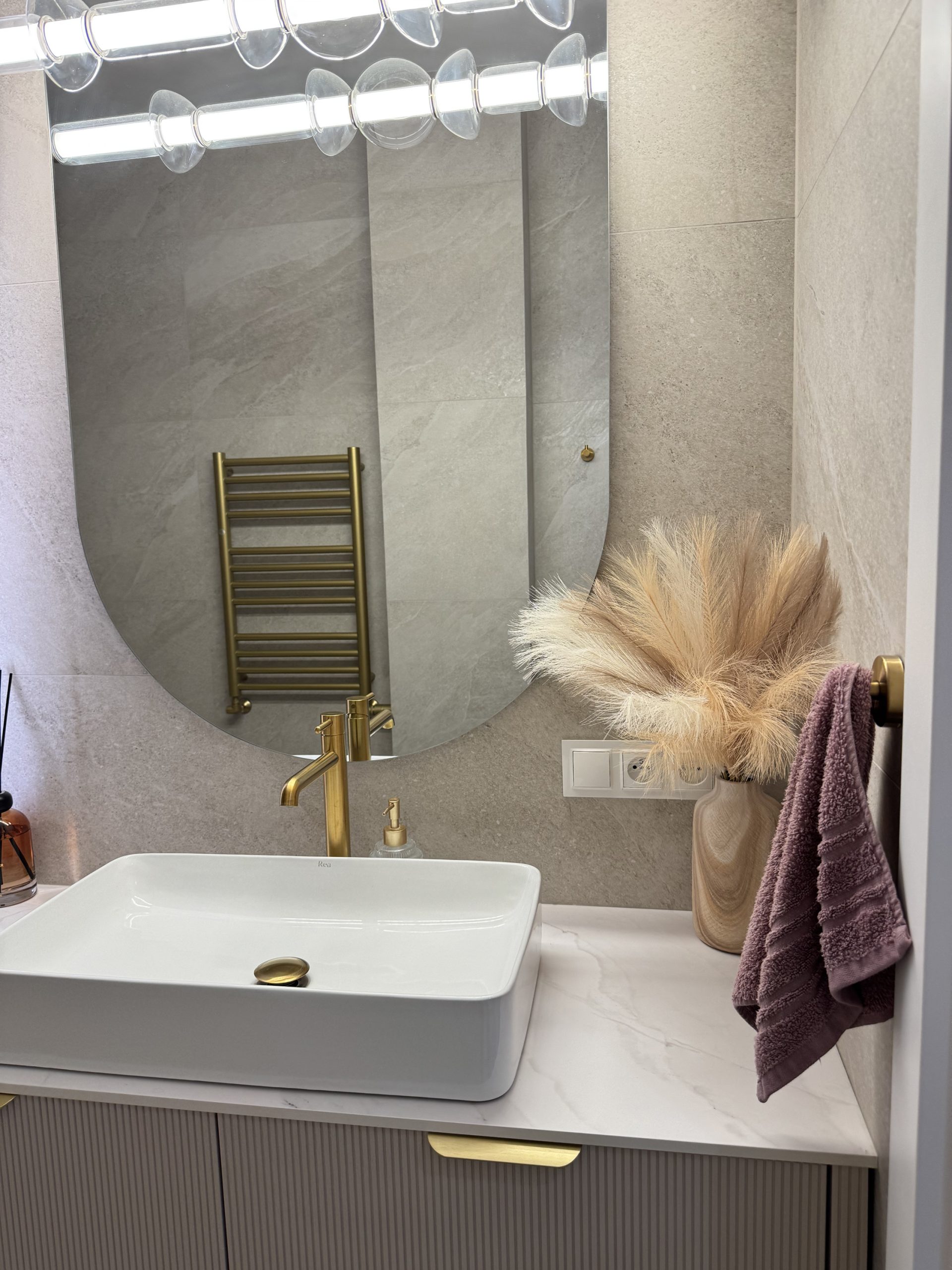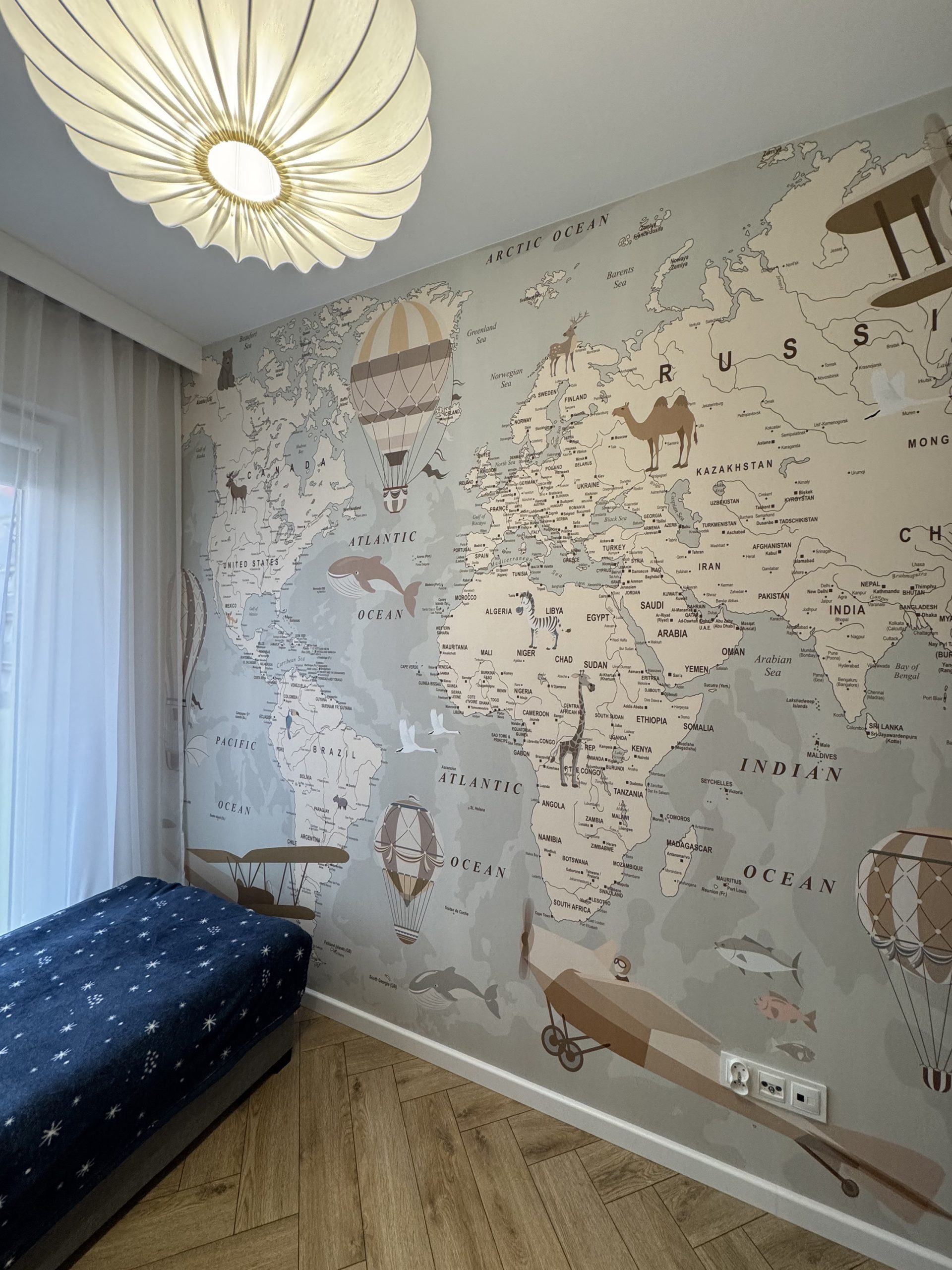 Cekolowanie i malowanie ścian oraz sufitów, układanie paneli podłogowych w całym mieszkaniu, układanie płytek podłogowych w łazience i kuchni, położenie gresu na ścianach w kuchni, montaż drzwi wewnętrznych, montaż armatury sanitarnej, montaż listew przypodłogowych, montaż oświetlenia głównego, montaż kontaktów i włączników.